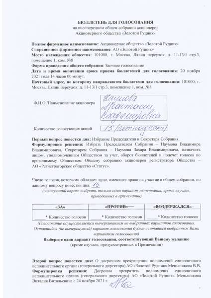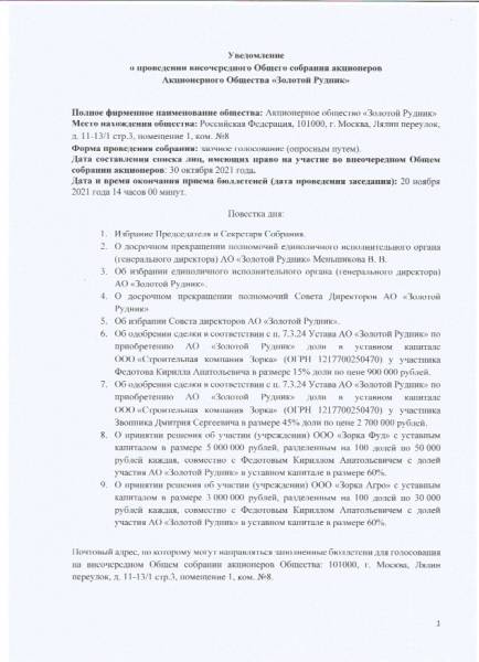 Засновником «Зорка Фуд» є акціонерне товариство «Золотой Рудник» (Москва). Бюлетень для голосування на позачергових зборах акціонерів цієї компанії від 20 листопада 2021 року свідчить про причетність до структури самого Наумова та його дітей – Анастасії та Захара Наумових.