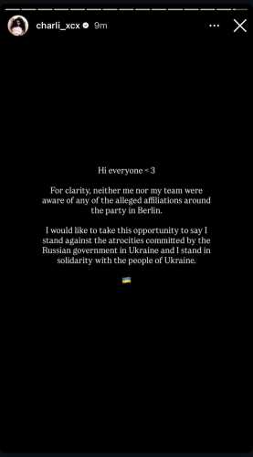 Charli XCX не була поінформована про причетність громадянки Росії до організації afterparty в Берліні. Про це британська виконавиця повідомила в Instagram.
