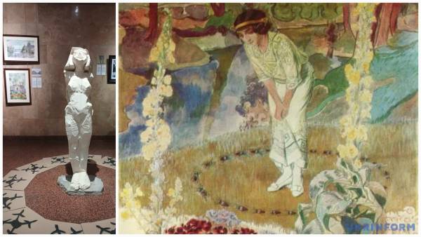 Щоб осягнути в деталях минуле та сьогодення через мистецькі твори, варто уважно придивитися на виставці «Херсон: НЕ/вкрадене»  до дерев’яної скульптури хлопця на  повний зріст. Його колом оперезують… дрони. Це творча інтерпретація до картини Михайла Жука «Казка. Хоровод жуків» 1914 року.