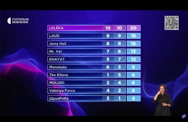 У суботу, 7 лютого, пройшло заключне голосування за конкурсанта «Євробачення 2026» у Відні від України. У ньому змагалися 10 виконавців: The Elliens, Molodi, "ЩукаРиба", Valeriya Force, Khayat, Monokate, Mr. Vel, Jerry Heil, Laud та Lelѐka.