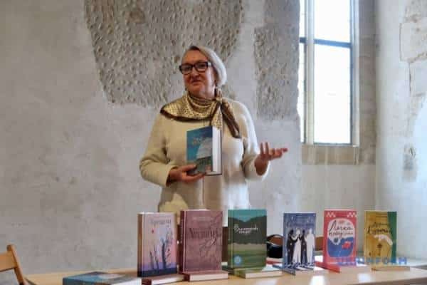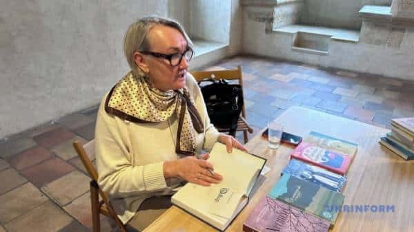 Охрименко розповіла про свою волонтерську роботу та продемонструвала книги, серед яких і ті, що принесли їхній творцеві літературні нагороди.