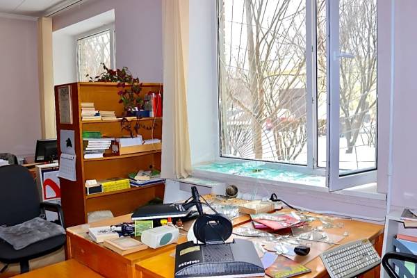 Вибуховою хвилею пошкоджено 10 віконних блоків та балконні двері, в тому числі у кімнатах відділів обслуговування найменших читачів.