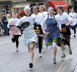 Сковорідка з запалу з жару була дуже гаряча, і тому млинець довелося ще й підкинути пару разів прямо на бігу, щоб не пригорів. Принаймні так стверджує легенда. Стався цей кумедний випадок, який нібито започаткував традицію «млинцевих бігів», у містечку Олні у Великій Британії в 1445 році. Жителі Олні – очевидці події – здебільшого, мабуть, розвеселі диваки, навіть і не здивувалися, а тим більше не посміялися з розсіяної господині і перетворили веселий казус на святкову традицію.