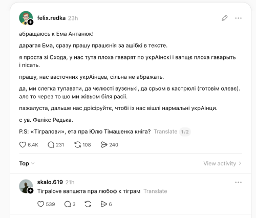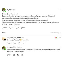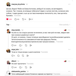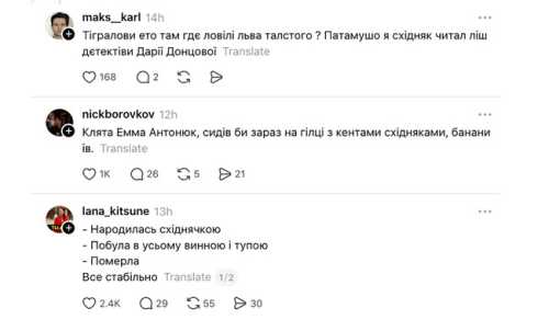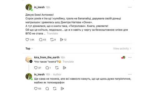 – Безумовно, вони беруть книжки, захоплюються книжками. А ці люди – вони “русскоговоряща чєлюсть”, вони були “зросійщені”, у них там були проблеми з самосвідомістю, вони вперше у житті читають “Тигроловів”. І в захваті, – нерозсудливо промовила блогерка.