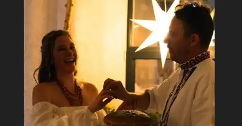 Клопотенко влаштував заручини в українському стилі. Кухар одягнув вишиту сорочку та поклав каблучку в хлібину. Катерина Воскресенська також відображена на фотографії в українському національному вбранні.