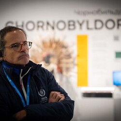 У річницю 40-річчя трагедії на Чорнобильській атомній станції Володимир Зеленський та генеральний директор Міжнародної агенції з атомної енергії Рафаель Гроссі першими оглянули модернізовану виставку «Чорнобиль: люди та значення».
