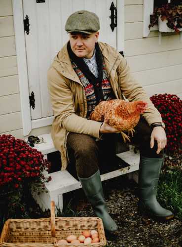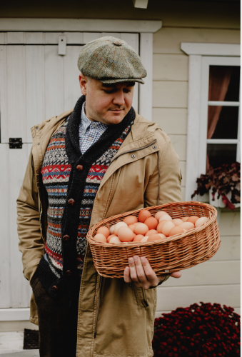 Засновник стартапу «Яйкос» Петро Приседько зі своїм діловим партнером – куркою-несучкою. Фото: з архіву Петра Приседька