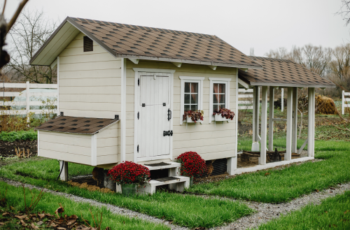 Невеликий затишний котедж білого кольору, з акуратними віконцями і терасою, обсадженою квітами – це курник. Фото: з архіву Петра Приседька