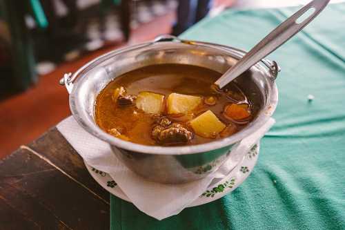 Суп густий, поживний, з великими шматками м’яса, овочів, ідеальний для холодної погоди.