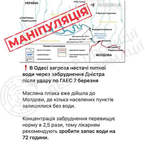 Там підтвердили, що 7 березня в результаті російського удару по Дністровській ГЕС відбувся витік технічних мастил. 10 березня сліди забруднення були виявлені у Вінницькій області, після чого вони почали переміщатися вниз за течією.